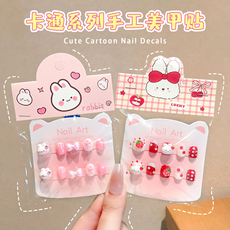 卡通草莓兔指甲贴儿童可爱新年红色立体指甲贴贴片甜美显白小女孩贴纸装饰品宝宝穿戴甲配饰生日礼物软甲片
