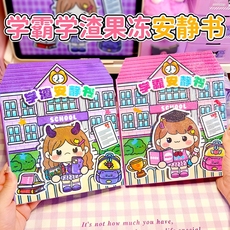 萌崽新款学霸学渣果冻贴纸安静书儿童免裁剪手工粘贴DIY女孩趣味玩具