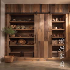 侘寂风实木衣柜 原木色衣柜 家用卧室衣柜原木 定制走入式衣柜