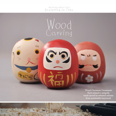 日本正版散货 达摩祈福招财猫福运不倒翁手办 手工木雕纯实木收藏