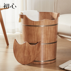 初心木质家用足浴桶50CM过小腿泡脚桶按摩高深实木带盖木桶洗脚盆