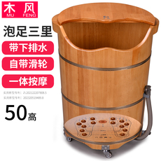 橡木泡脚木桶洗脚足浴木盆家用高深桶50高过小腿带排水轮子按摩盆
