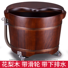泡脚桶木桶家用带轮子带排水足浴桶过小腿木质洗脚桶足疗按摩盆