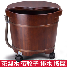 花梨木泡脚桶带轮子木桶带排水洗脚足浴木盆家用盆足疗按摩高深桶