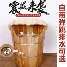 橡木泡脚木桶洗脚足浴木盆家用高深桶50高过小腿带W排水轮子按摩