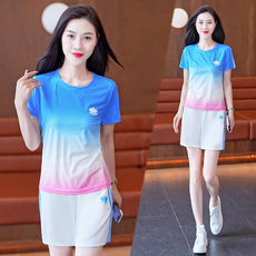 跑步运动套装女夏季啦啦队马拉松T恤打羽毛网球服晨跑健身速干衣