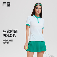 运动短袖女夏季凉感速干polo衫跑步上衣半拉链t恤羽毛网球服套装