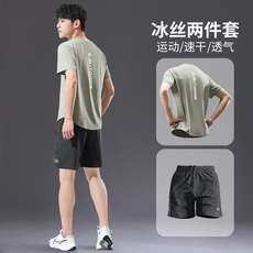 运动套装男夏季冰丝短袖速干衣跑步健身服薄款专业羽毛球训练衣服