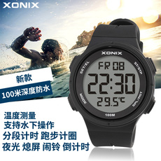 XONIX测温度大数字多功能跑步记圈电子表防水潜水游泳学生手表男