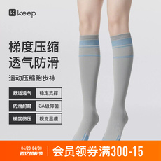 Keep专业跑步运动袜女小腿压缩袜徒步骑行羽毛球长筒袜子