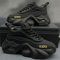 黑武士男鞋秋季厚底增高潮流休闲百搭跑步气垫减震皮面运动老爹鞋