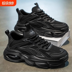 黑武士男鞋秋季男士跑步减震气垫运动鞋男款休闲增高黑色老爹网面