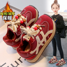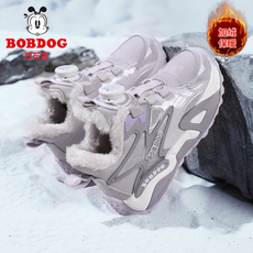 巴布豆女童棉鞋冬季加绒加厚保暖大棉运动鞋抗寒儿童户外跑步鞋