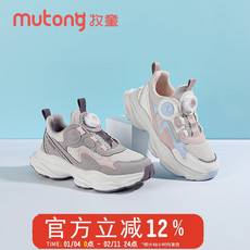 牧童童鞋女童运动鞋2025秋季新款旋转纽扣双网透气跑步鞋中大童鞋