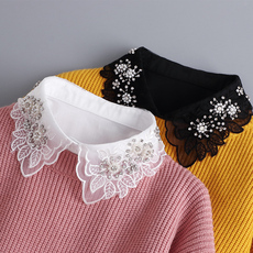 假领子女百搭假衣领绣花叶子毛衣衬衫装饰领百搭打底半身娃娃领