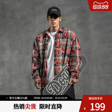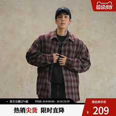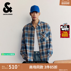 杰克琼斯男装秋新款蛇年新年款潮流百搭宽松衣身格纹图案尖领衬衫