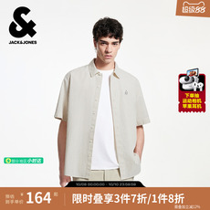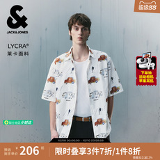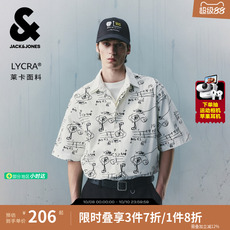 杰克琼斯男装秋季新款BSQ联名百搭衣身涂鸦宽松短袖翻领衬衫