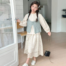 女童春秋款套装2025新款洋气女大童春装马甲衬衫儿童秋季半身裙子