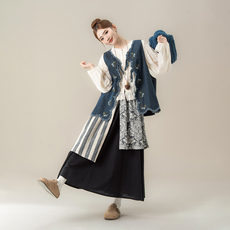 织造司[青梅弄]原创新中式鸡心领雪纺束口灯笼袖衬衫半身八破裙女