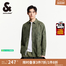 杰克琼斯男装秋季新款休闲潮流百搭舒适衣身图案满印翻领衬衫外套