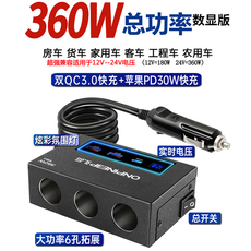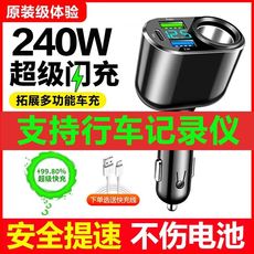 车载充电器超级快充扩展口一拖二三点烟器转换插头大功率汽货车充
