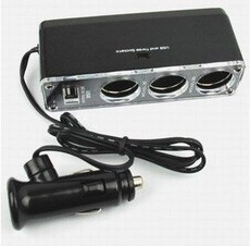 车载多功能带双USB插头母座可点烟点烟器一拖四汽车充电器一分三