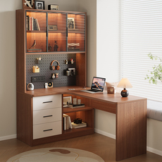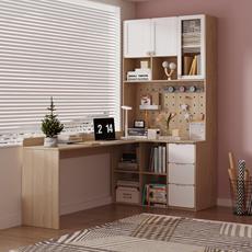 实木书桌书柜一体转角学生家用学习桌卧室洞洞板组合多功能电脑桌