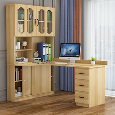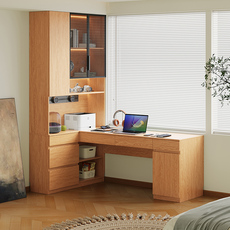 国补实木橡木色卧室书房小户型玻璃门转角书柜连书桌一体组合柜子