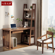 实木电脑桌轻奢现代书桌书架组合家用台式置物转角学习桌书柜一体