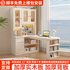 转角书桌书架一体实木电脑桌子台式卧室学习桌家用组合书柜可定制