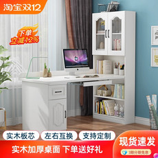 实木转角书桌书架书柜一体组合卧室台式电脑桌家用学生写字学习桌