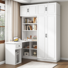 衣柜和书桌一体组合柜小户型儿童房实木转角多功能储物学习桌书柜
