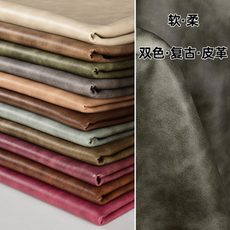 1mm厚轻奢双色PU皮革面料 复古炒色柔软弹力家装背景软包汽车内饰