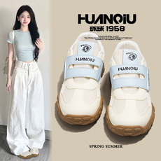 网面透气薄款德训鞋子女2025夏秋新款轻便真皮休闲板鞋运动阿甘鞋
