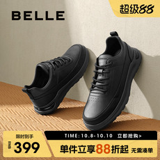 百丽男士休闲运动鞋秋冬季一脚蹬轻便健步鞋黑色爸爸皮鞋A1447BM4