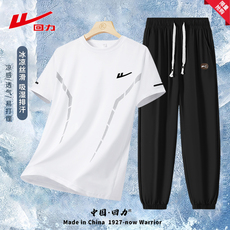 回力冰丝运动套装男夏季新款速干t恤跑步健身衣服短袖短裤两件套A