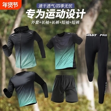 秋冬运动紧身裤男健身衣套装夏薄款高弹力加绒跑步训练篮球打底裤