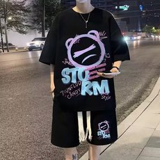 2025新款短袖T恤男士冰丝套装夏季潮流学生短裤宽松休闲运动一套