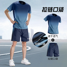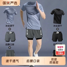 运动套装男跑步短裤可放手机夏季冰丝速干衣短袖t马拉松健身衣服