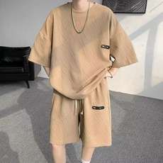 大码夏季华夫格套装男薄款短袖t恤短裤运动休闲男装一套搭配帅气