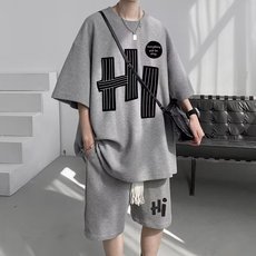 夏季学生短袖短裤一套穿搭男孩潮牌运动套装青少年港风T恤两件套
