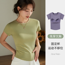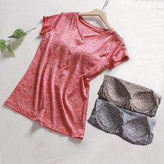 带胸垫睡衣女夏短袖T恤背心免文胸罩杯一体上衣运动瑜伽可外穿