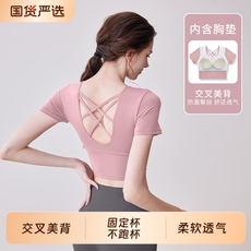 絮笛瑜伽服上衣女运动短袖健身套装普拉提训练服夏季美背白色t恤