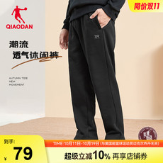 特步运动裤男士秋季薄款透气卫裤针织裤直筒裤子跑步通勤休闲长裤