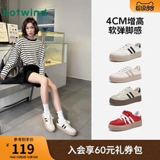 人本内增高红色德训鞋女2025秋季新款学生小白鞋百搭休闲运动鞋子