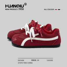 环球红色德训鞋女款2025新款秋季百搭小众设计感轻便休闲运动鞋潮