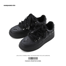 小众美式板鞋新款休闲面包鞋男款情侣鞋子春季高级感黑色运动鞋女