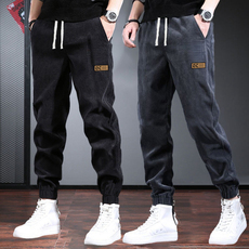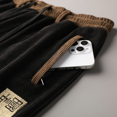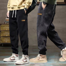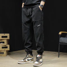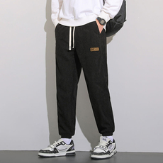 加厚休闲裤男士秋季新款灯芯绒保暖男款拼接束脚运动长裤潮流百搭