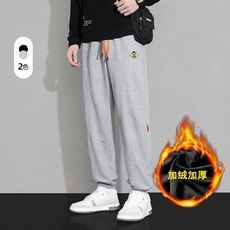 裤子男士秋冬季新款休闲运动裤宽松束脚男生卫裤加厚男士印花长裤