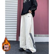 港风冬季加绒加厚卫裤男潮牌刺绣条纹长裤宽松休闲裤保暖运动裤子
